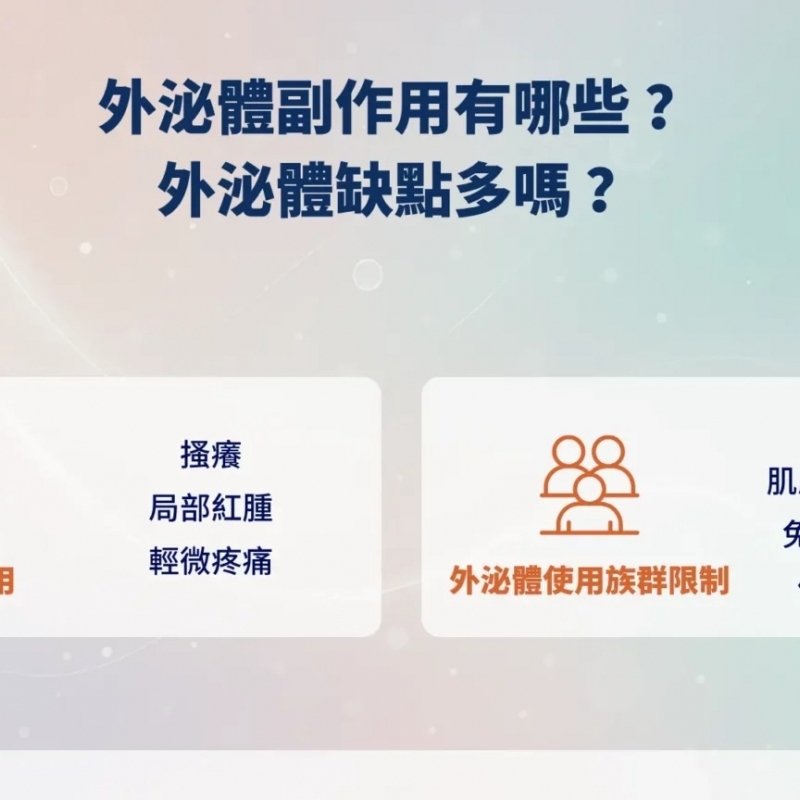 外泌體保養品風潮正夯,但你是否也疑惑:外泌體會有副作用嗎?使用起來真的安全嗎?雖然具備護膚潛力,但若原料來源不明、製程不當,仍可能引發敏感或刺激反應。
